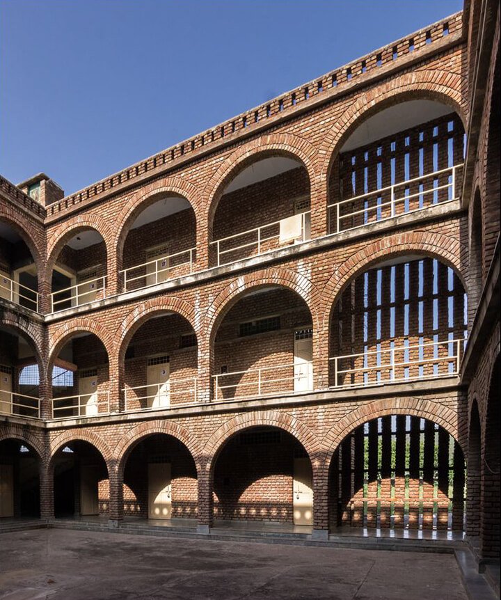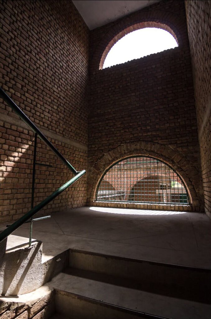 The arch emerges as the prime design element running through the complex. It is not merely decorative. Along corridors and interior spaces, the arch enhances elevation and provides rhythm. Structurally, it replaces conventional lintels at various levels, becoming both visual signature and load-bearing logic. The arch, repeated and re-interpreted, ties the campus together—a quiet thread through a diverse program.