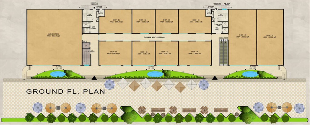 Located on Alwar-Bhiwadi highway, this highstreet commercial space aims to be the hub of all commercial activity for the larger Bhiwadi area. G+1 developement spread over two distinct towers also boasts of 20′ high ceilings allowing possibility ofmezzanine floors in all shops.