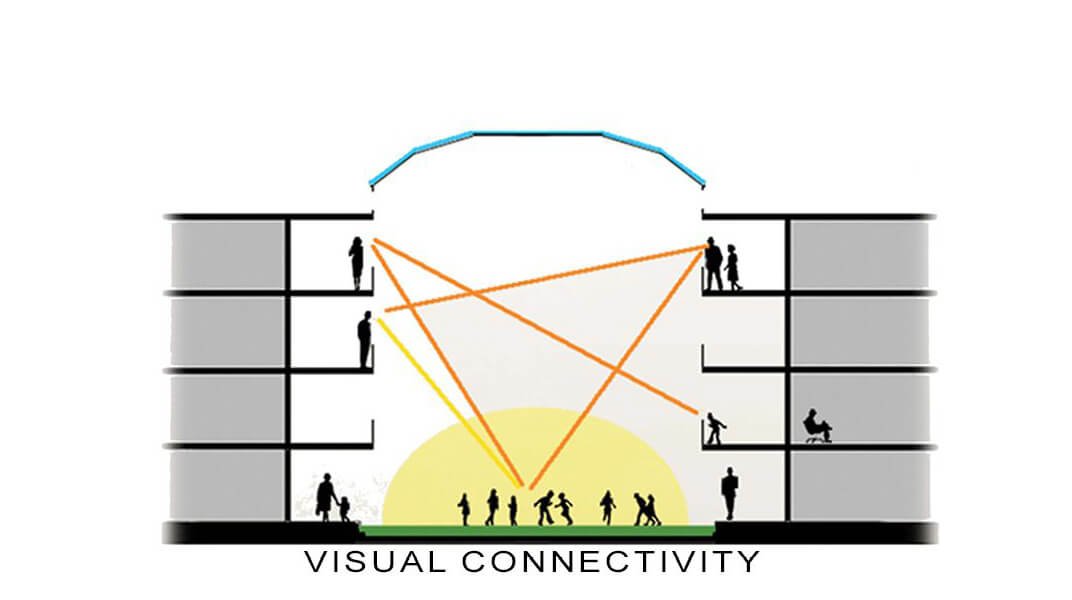 The central courtyard doubles as a congregation space—large enough for mini assemblies, intimate enough for everyday gatherings. It promotes healthy interaction not by design mandate, but simply by existing as a place children naturally want to be.